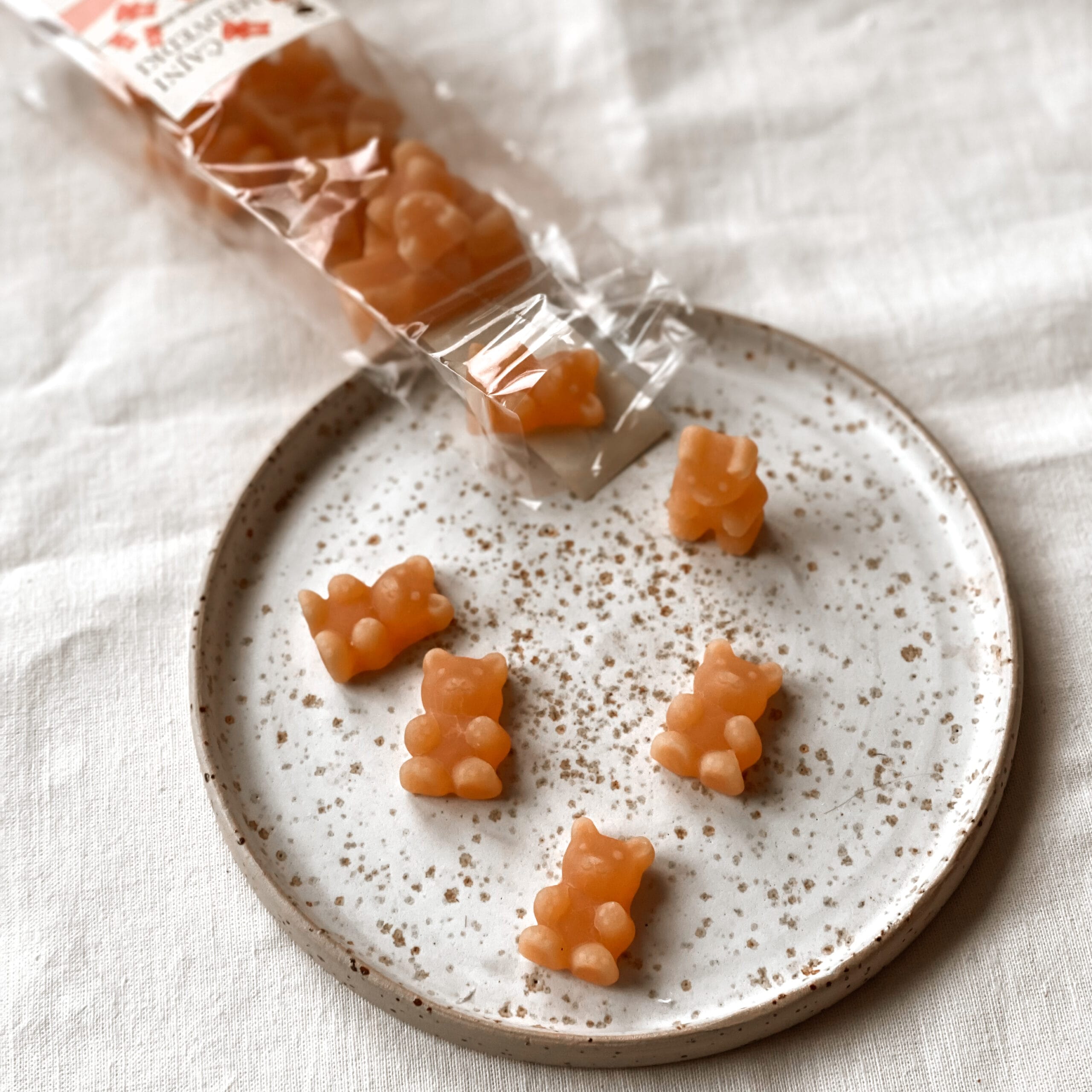 Prikupni čajni medvedki, ki jih lahko pojeste kot bonbone ali pa jih raztopite v vroči vodi in dobite slasten sadni napitek. En medvedek zadostuje za cca. 1,5 dl vroče vode.BREZ GLUTENA.