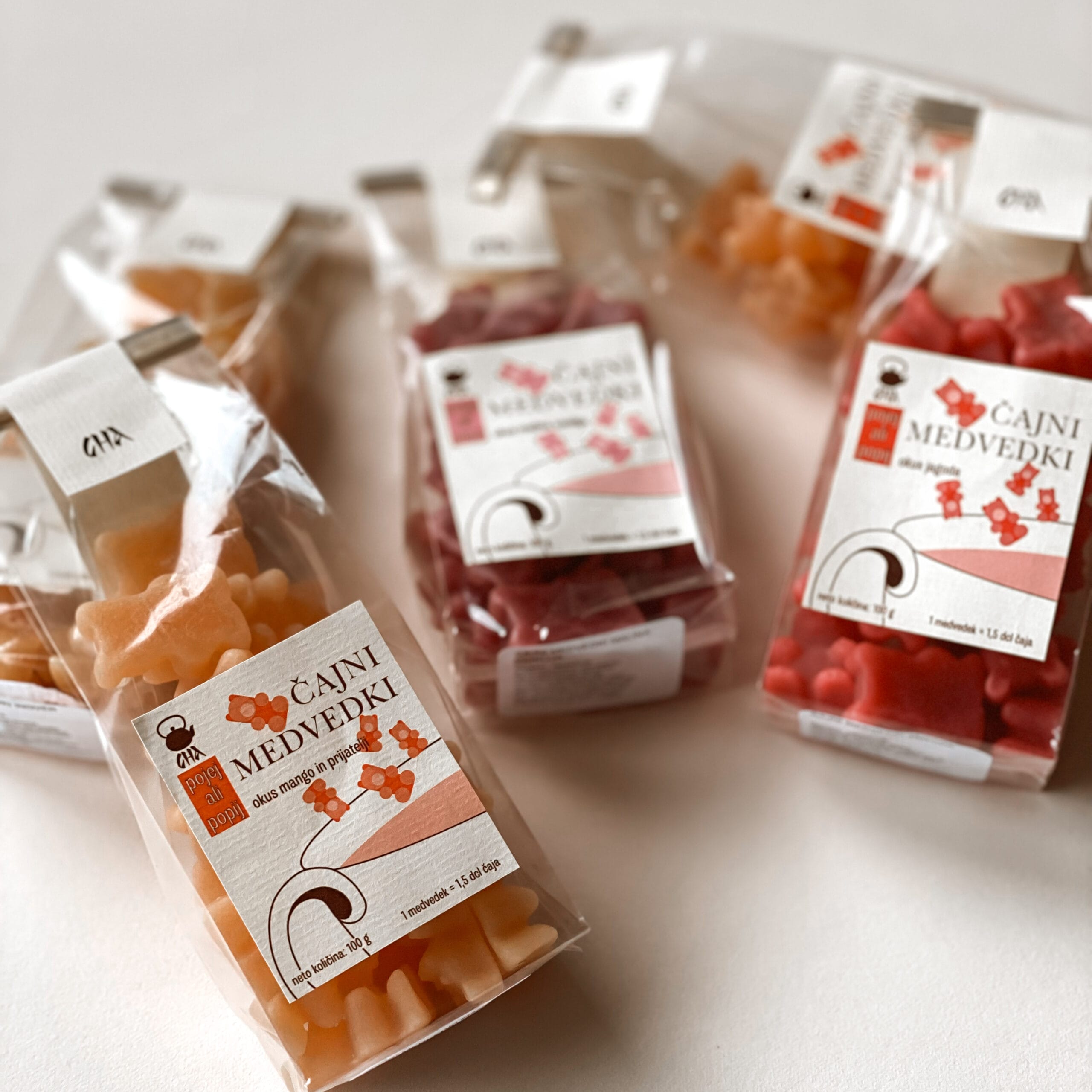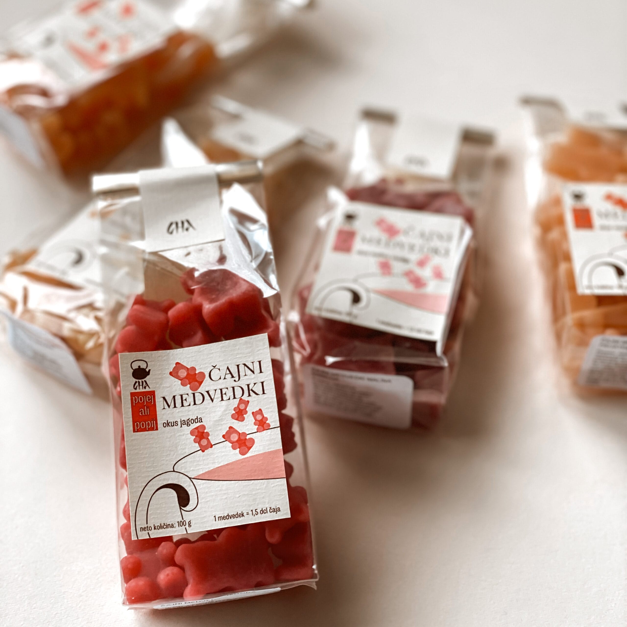 Prikupni čajni medvedki, ki jih lahko pojeste kot bonbone ali pa jih raztopite v vroči vodi in dobite slasten sadni napitek.