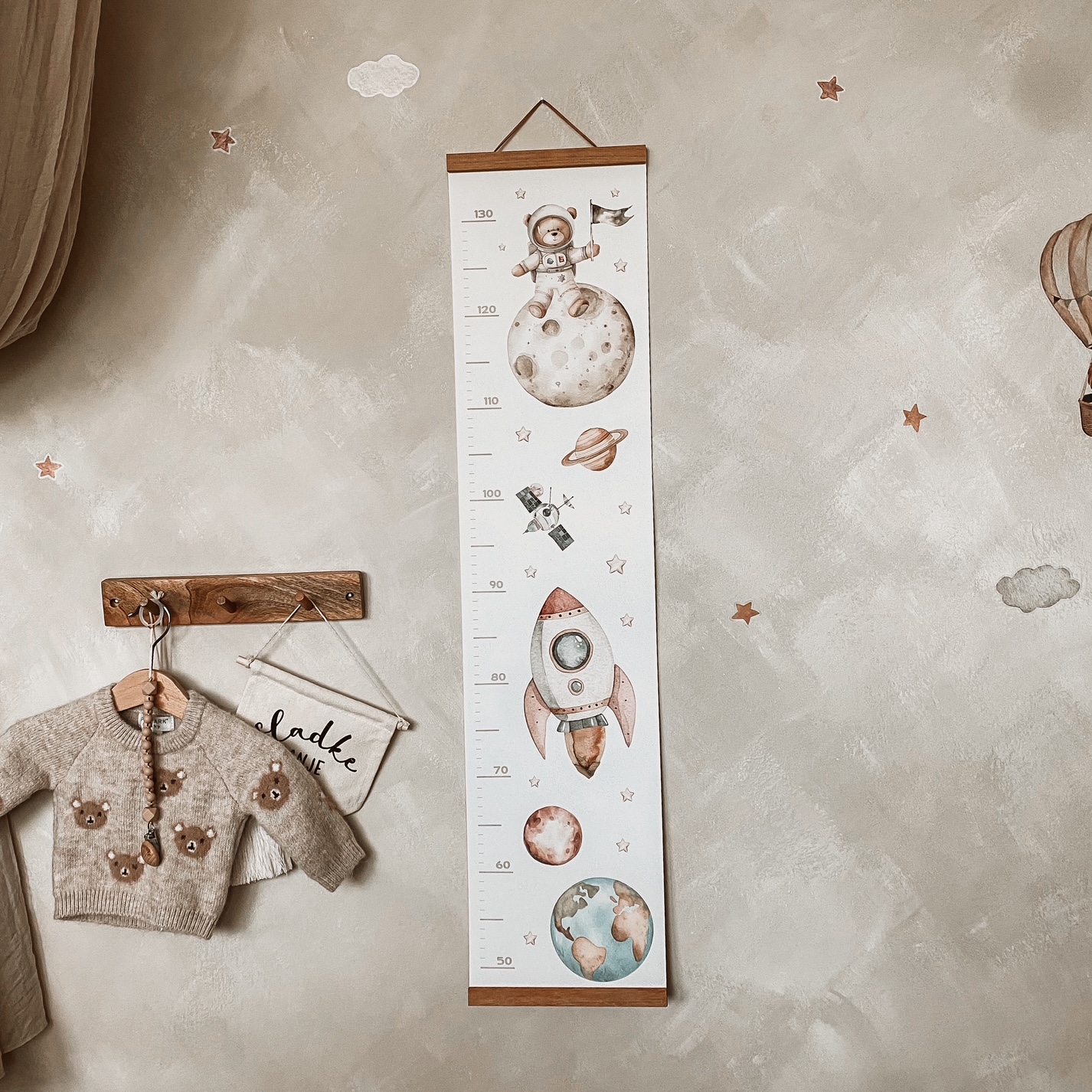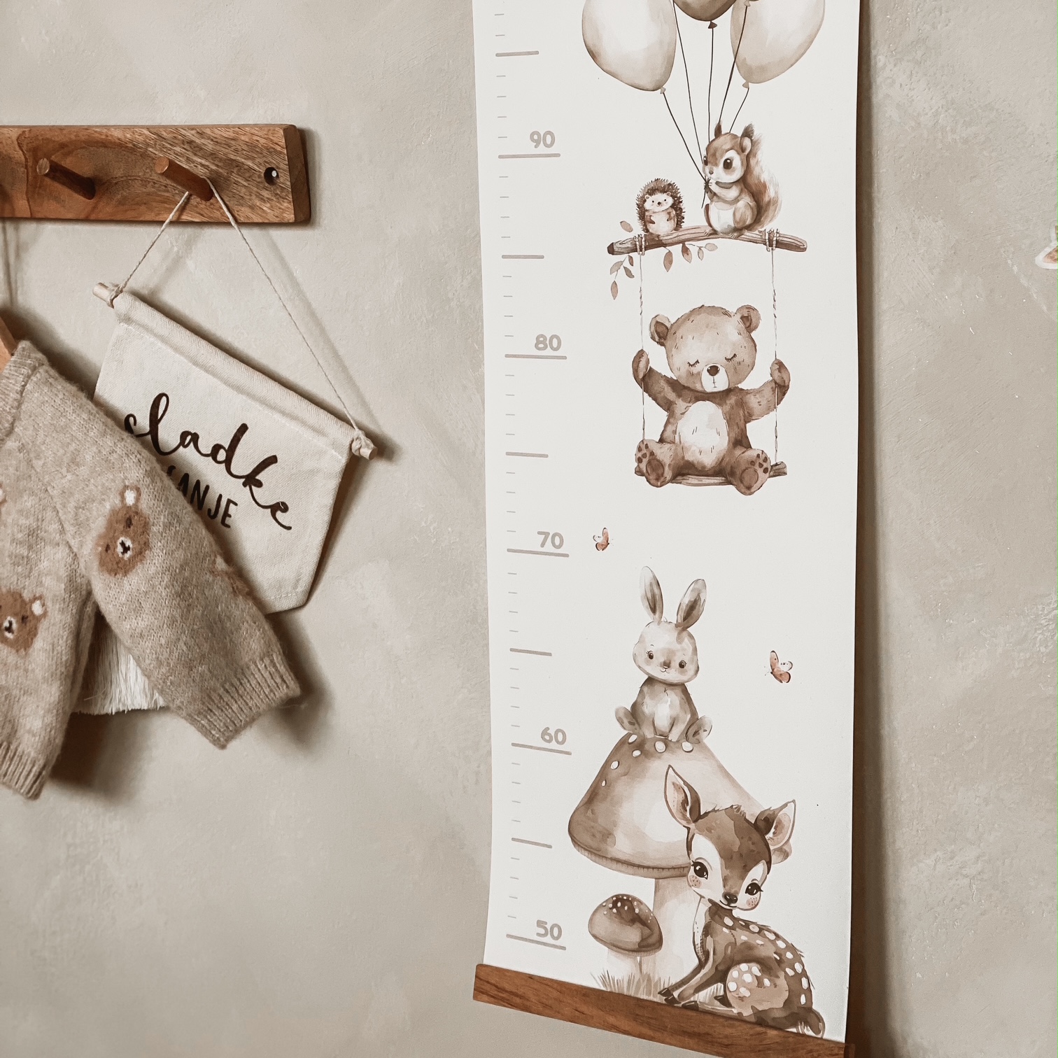 Olepšajte otroško sobo z našim ljubkim in praktičnim dekorativnim rastnim metrom. Ta čudovit dodatek ni le estetsko privlačen, ampak tudi nepogrešljiv za spremljanje rasti vašega malčka.