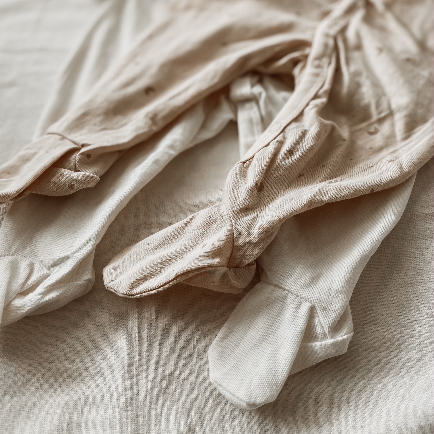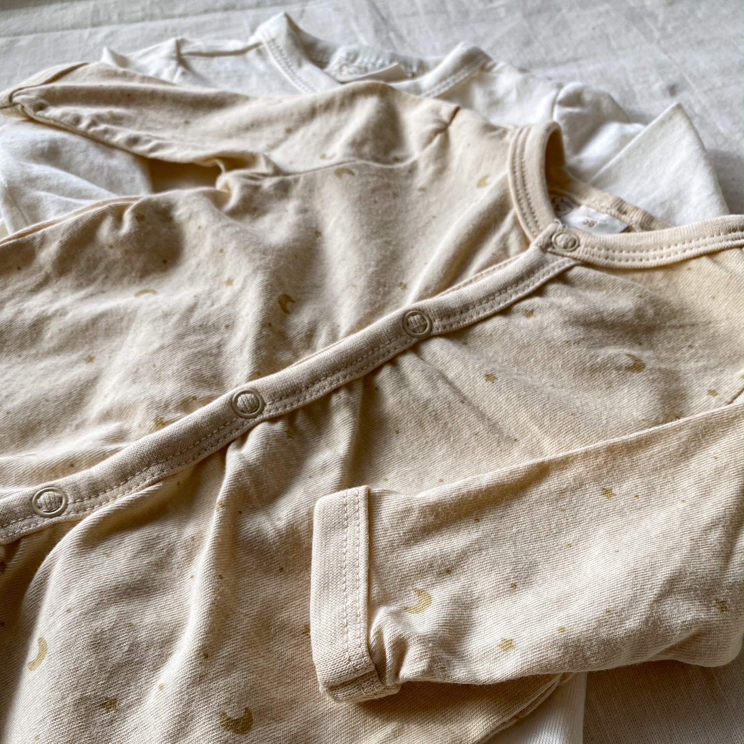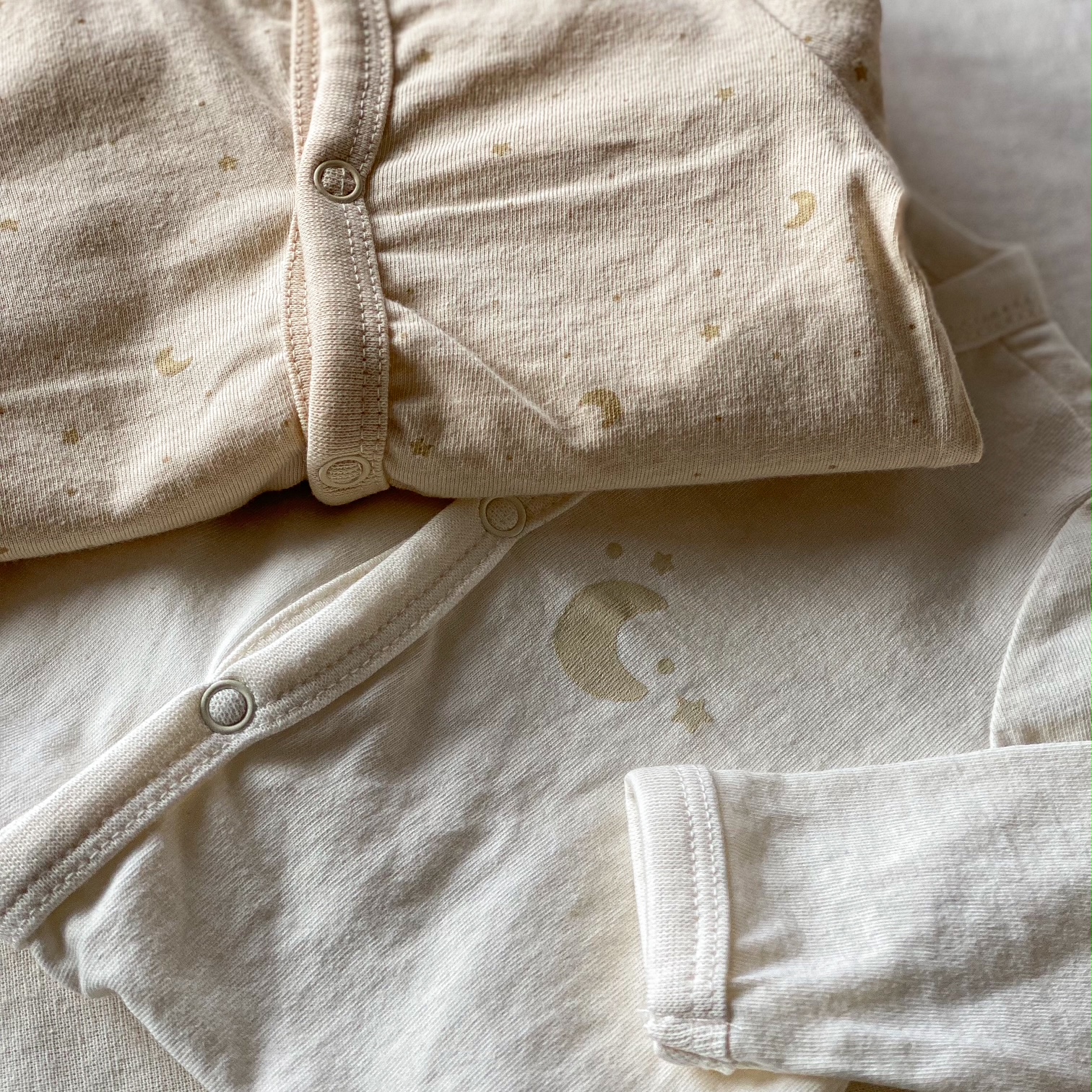 – v kompletu sta dva pajacka na gumbe s stopalkami; 100 % bombaž